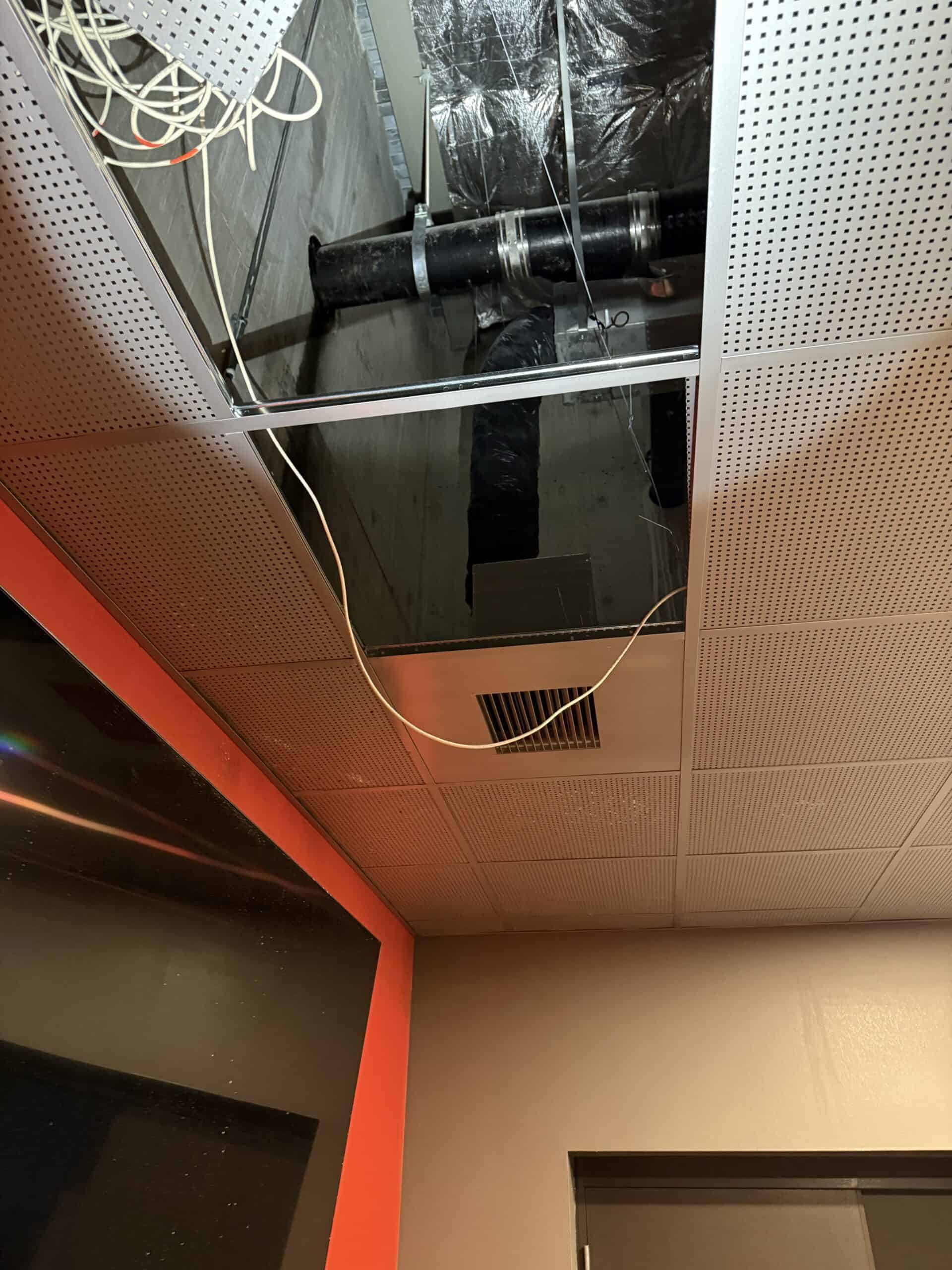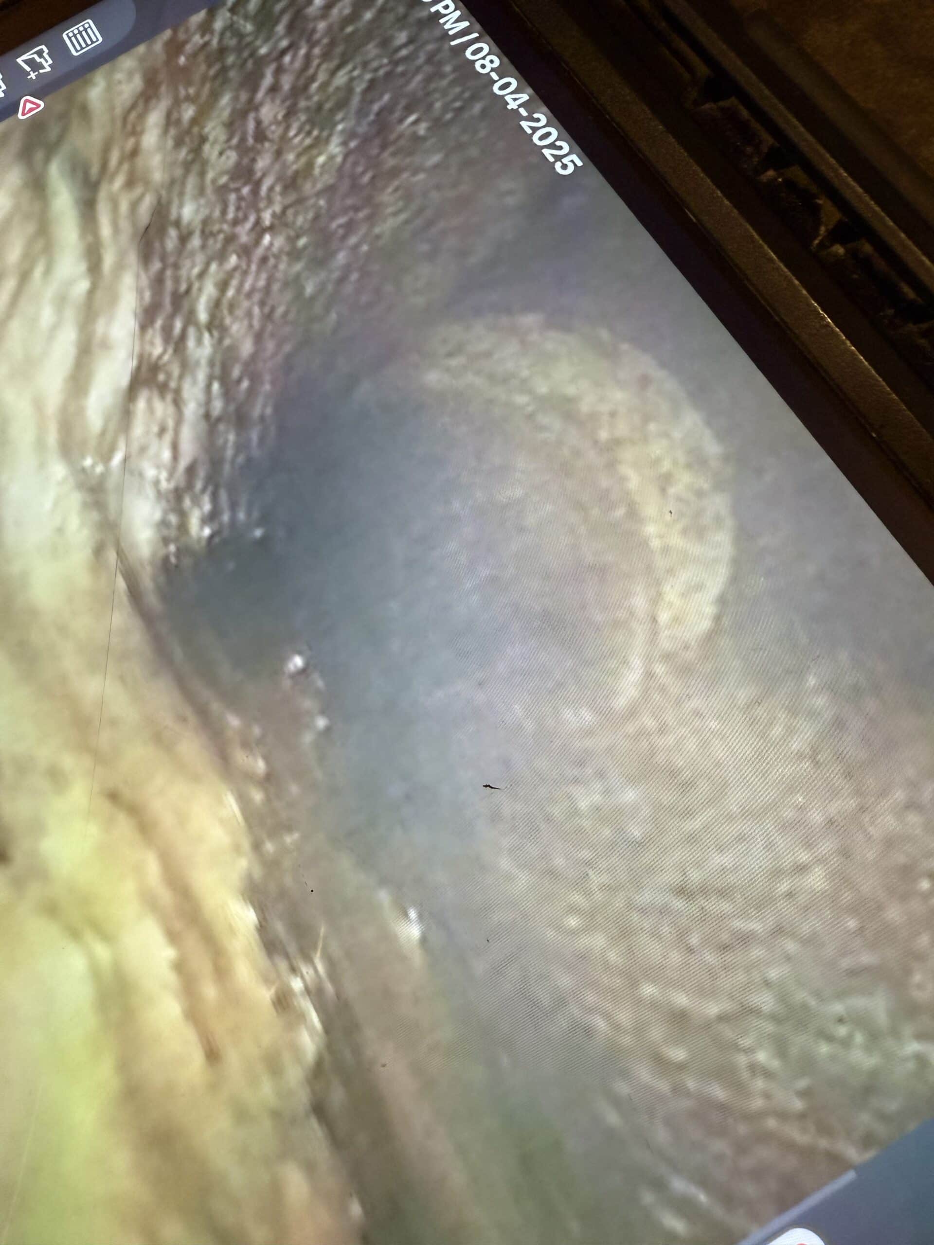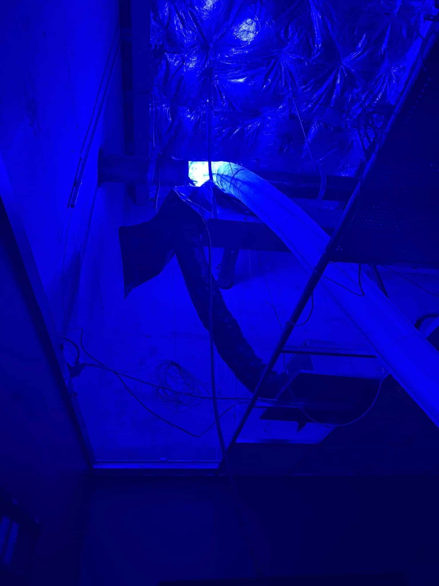 20’ of overhead leaking 8” sanitary line suspended 20’ in the air relined using Hammerhead Bluelight technology