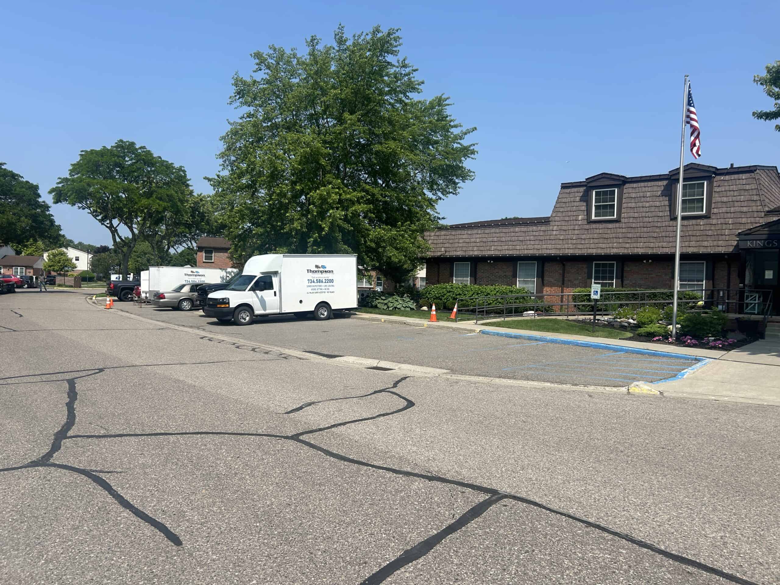40’ of sanitary sewer under concrete walk way multiple gas lines and fiber optic lines 14’ deep all rehabilitated by hammerhead blue light technology
